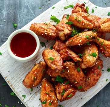 chicken wings served with sriracha
